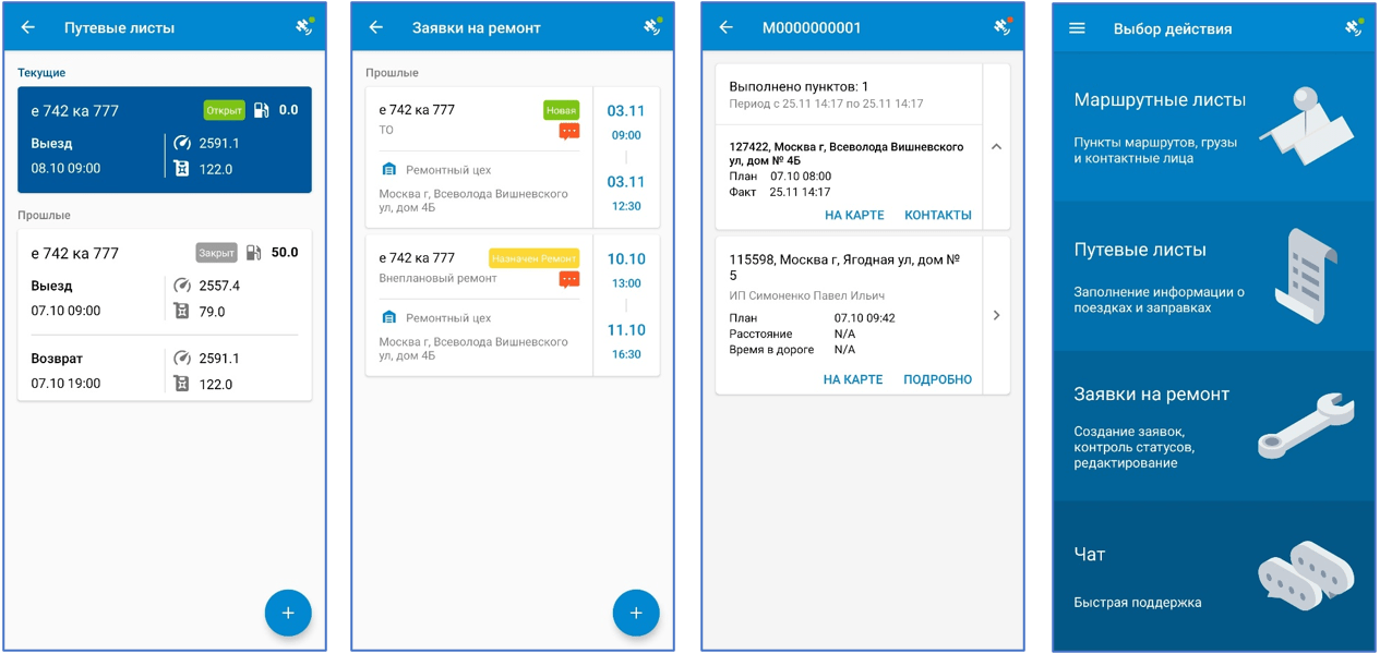 Взаимодействие с диспетчерской в режиме онлайн. Работа с маршрутными листами. Работа с путевыми листами. Оформление заявок на ремонт