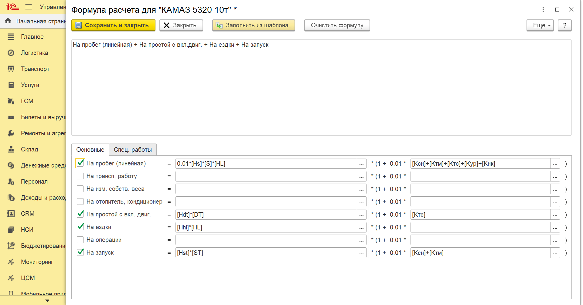 Есть учет корректировочных коэффициентов ГСМ (сложные условия работы, температурные коэффициенты, сезонные надбавки).