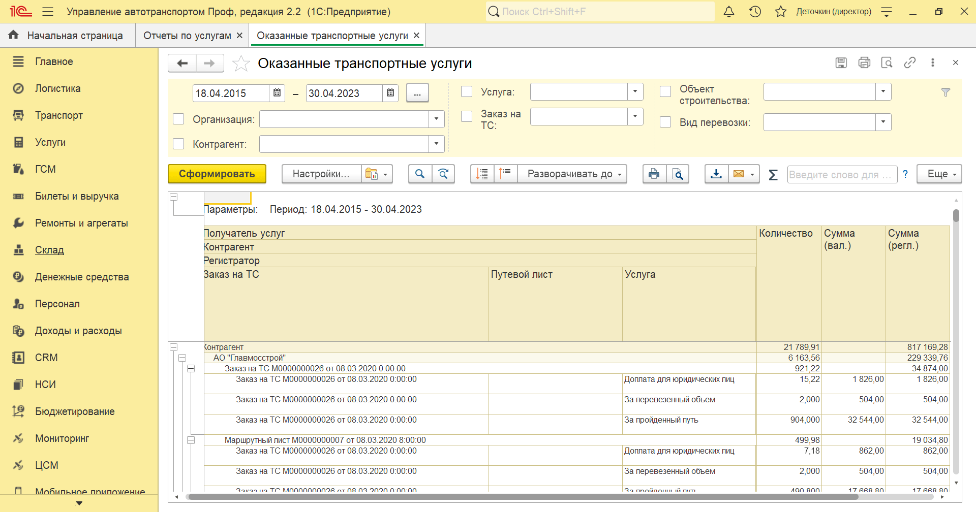 Система управления автопарком позволяет предприятию минимизировать расходы на перевозки грузов, а также производить учет ГСМ, запчастей и ремонта транспорта.