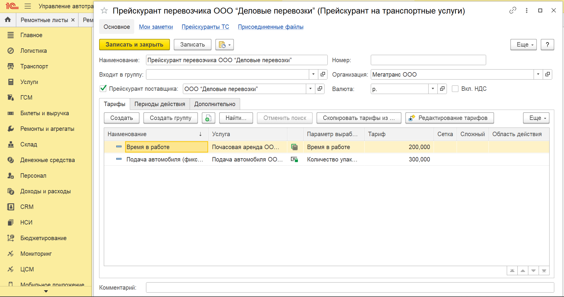 Прейскуранты и тарифов на транспортные услуги. Расчет стоимости оказанных услуг. Формирование документов реализаций, счетов и актов. Учет денежных средств